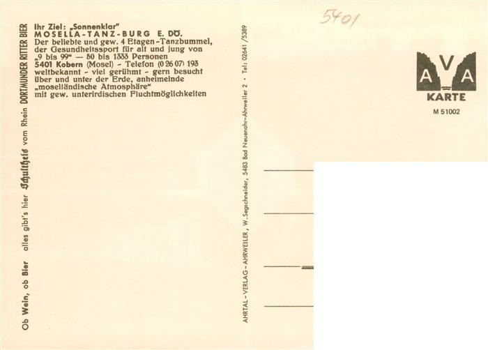 73890057 Kobern-Gondorf Mosel Mosella Tanz Burg Gastraeume postalisch nicht gelaufen Erhaltung siehe scans [WerneD78] KatCode: 11110007137212