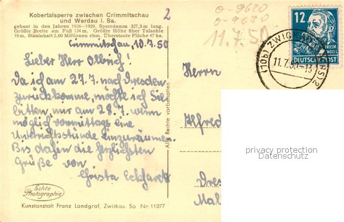 old postcard Kobertalsperre Panorama postalisch gelaufen Erhaltung siehe scans [KathaD81]