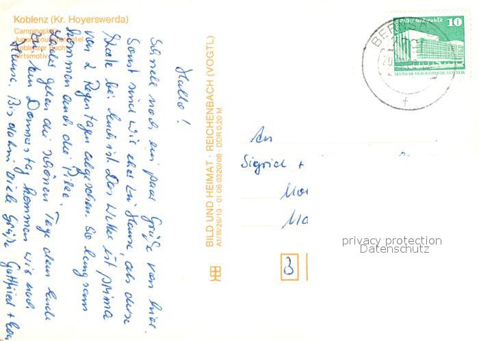 72941466 alte Postkarte Koblenz Lohsa Campingplatz Jugendtouristenhotel Knappensee postalisch gelaufen Erhaltung siehe scans [PaolaD17] KatCode: 11110014292320
