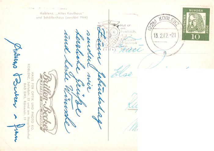 73924955 alte Postkarte Koblenz Rhein Altes Kaufhaus und Schoeffenhaus postalisch gelaufen Erhaltung siehe scans [WerneD78] KatCode: 11110007111000