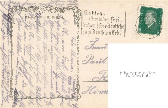 73556599 alte Postkarte Koblenz Rhein Blick vom Rittersturz postalisch gelaufen Erhaltung siehe scans [LiesaD40] KatCode: 11110007111000