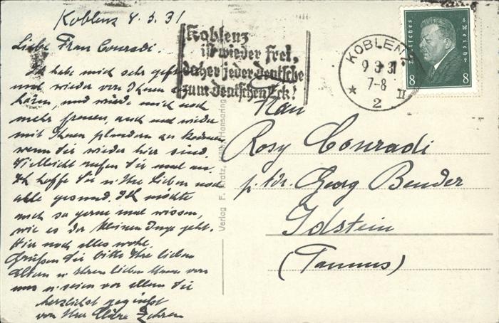 71489486 alte Postkarte Koblenz Rhein Blick vom Rittersturz postalisch gelaufen Erhaltung siehe scans KatCode: 11110007111000