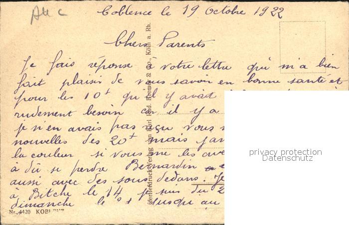 72431412 Koblenz Rhein Blick von Rittersburg postalisch nicht gelaufen Erhaltung siehe scans KatCode: 11110007111000