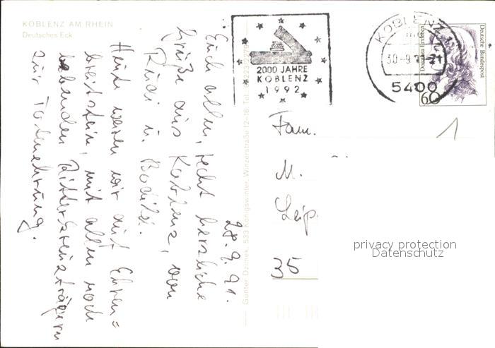 71976488 alte Postkarte Koblenz Rhein Deutsche Eck Fliegeraufnahme postalisch gelaufen Erhaltung siehe scans KatCode: 11110007111000