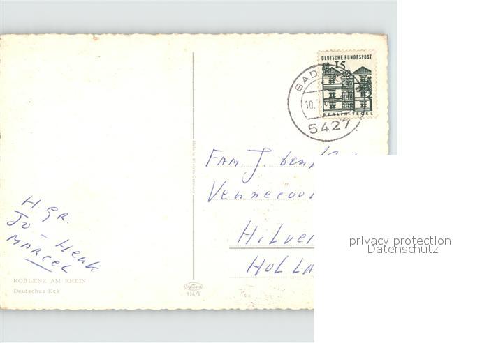 72481543 alte Postkarte Koblenz Rhein Deutsches Eck postalisch gelaufen Erhaltung siehe scans KatCode: 11110007111000