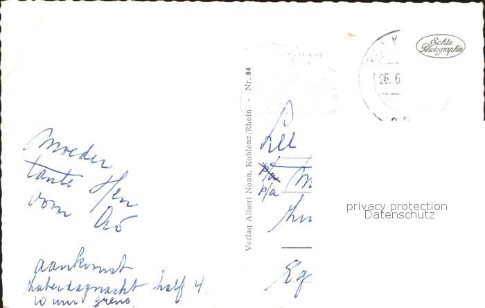 72081814 alte Postkarte Koblenz Rhein Deutsches Eck mit Ehrenbreitstein Camping Platz postalisch gelaufen Erhaltung siehe scans KatCode: 11110007111000
