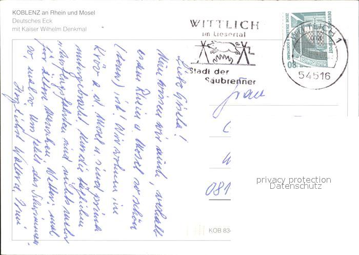 72378505 alte Postkarte Koblenz Rhein Deutsches Eck mit Kaiser Wilhelm Denkmal postalisch gelaufen Erhaltung siehe scans KatCode: 11110007111000
