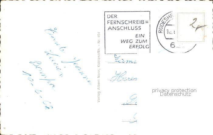 72270996 alte Postkarte Koblenz Rhein Deutsches Eck Schaengelche Rheinpartie Ehrenbreitstein Abend am Rhein postalisch gelaufen Erhaltung siehe scans KatCode: 11110007111000