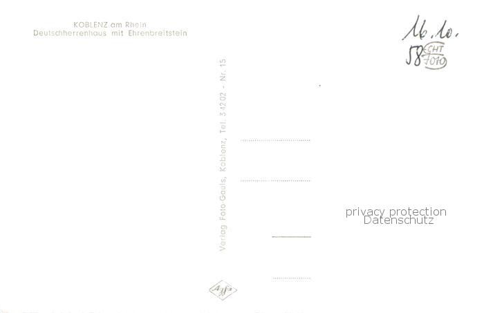 73800835 Koblenz Rhein Deutschherrenhaus mit Ehrenbreitstein postalisch nicht gelaufen Erhaltung siehe scans [WerneD78] KatCode: 11110007111000