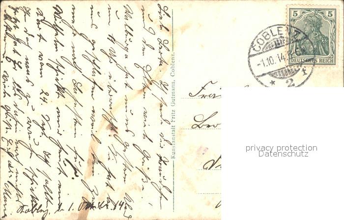72316341 alte Postkarte Koblenz Rhein Ehrenbreitseite Rheintal postalisch gelaufen Erhaltung siehe scans KatCode: 11110007111000