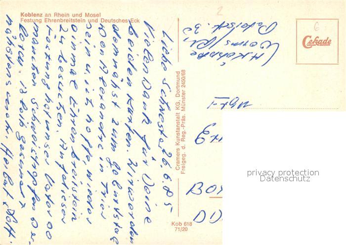 73125896 Koblenz Rhein Festung Ehrenbreitstein postalisch nicht gelaufen Erhaltung siehe scans [NatalD47] KatCode: 11110007111000