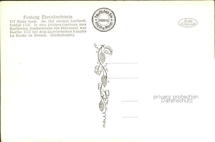 72199214 Koblenz Rhein Festung Ehrenbreitstein postalisch nicht gelaufen Erhaltung siehe scans KatCode: 11110007111000
