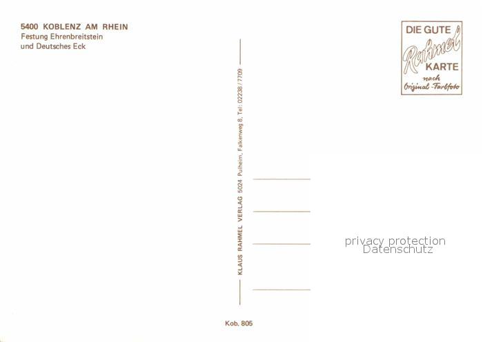 72701358 Koblenz Rhein Festung Ehrenbreitstein Deutsches Eck postalisch nicht gelaufen Erhaltung siehe scans [KathaD79] KatCode: 11110007111000