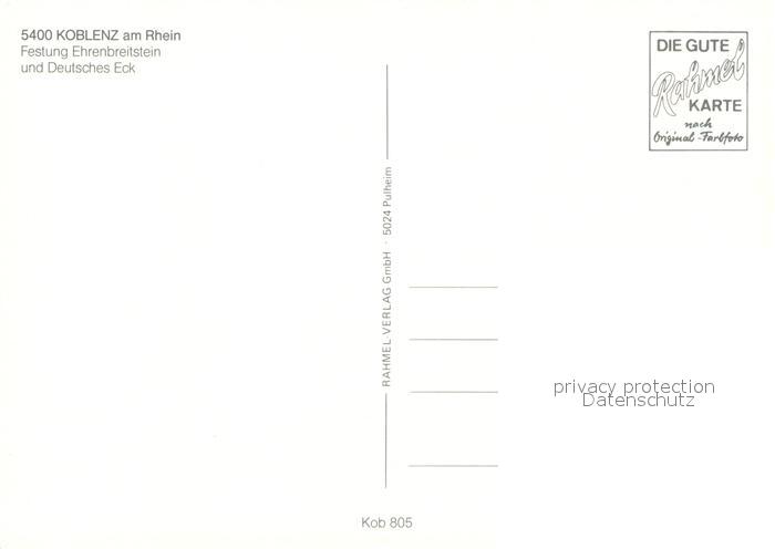 73125073 Koblenz Rhein Festung Ehrenbreitstein Deutsches Eck postalisch nicht gelaufen Erhaltung siehe scans [PaolaD17] KatCode: 11110007111000