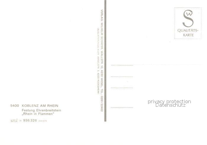 73023866 Koblenz Rhein Festung Ehrenbreitstein Rhein in Flammen postalisch nicht gelaufen Erhaltung siehe scans [WerneD78] KatCode: 11110007111000