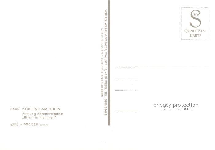 73024523 Koblenz Rhein Festung Ehrenbreitstein Rhein in Flammen postalisch nicht gelaufen Erhaltung siehe scans [WerneD78] KatCode: 11110007111000