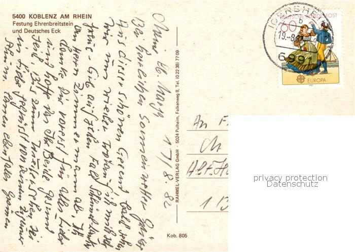 73045944 alte Postkarte Koblenz Rhein Festung Ehrenbreitstein und Deutsches Eck Fliegeraufnahme postalisch gelaufen Erhaltung siehe scans [WerneD78] KatCode: 11110007111000
