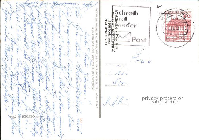 72567632 alte Postkarte Koblenz Rhein Fliegeraufnahme Brunnen Deutsches-Eck postalisch gelaufen Erhaltung siehe scans [LiesaD40] KatCode: 11110007111000