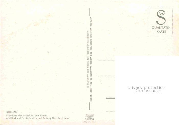 72896697 Koblenz Rhein Fliegeraufnahme Muendung Mosel Rhein Deutsches Eck postalisch nicht gelaufen Erhaltung siehe scans [AndreD76] KatCode: 11110007111000