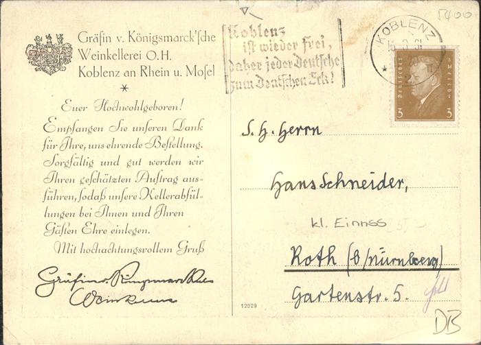 41331748 Koblenz Rhein Gräfin v. Königsmarck’sche Weinkellerei KatCode 11110007111000