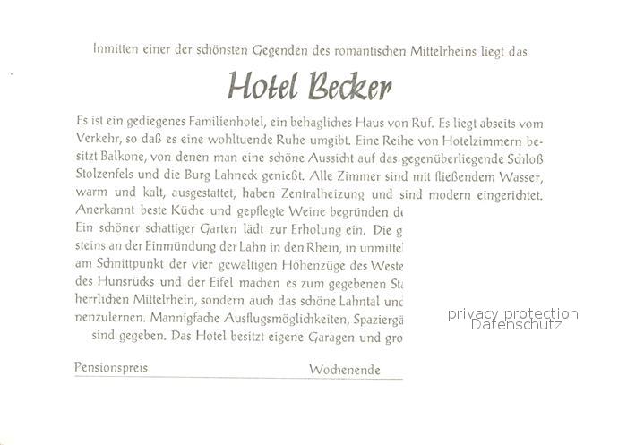 72937385 Koblenz Rhein Hotel Becker Restaurant Hausmusik Musikkapelle postalisch nicht gelaufen Werbekarte (keine Postkarte) Erhaltung siehe scans [FriedD77] KatCode: 11110007111000