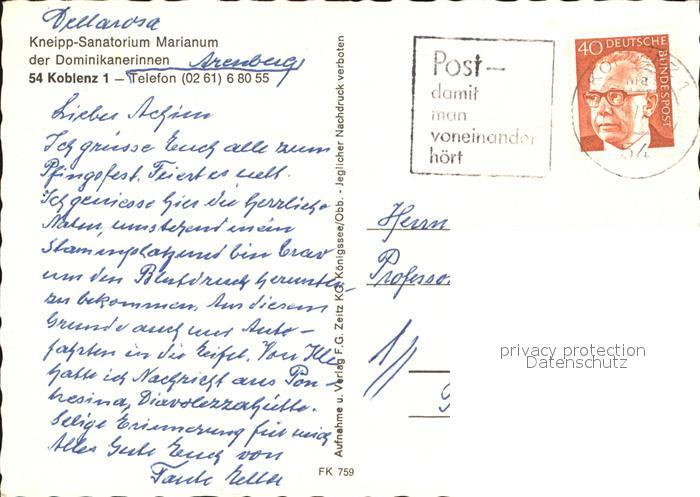 72609780 alte Postkarte Koblenz Rhein Kneipp-Sanatorium Marianum postalisch gelaufen Erhaltung siehe scans [LiesaD40] KatCode: 11110007111000