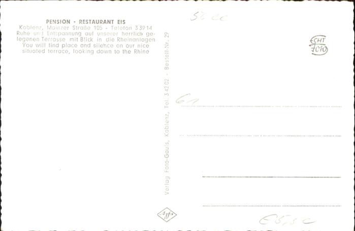 40927581 Koblenz Rhein Koblenz Pension Restaurant Cafe Eis KatCode 11110007111000