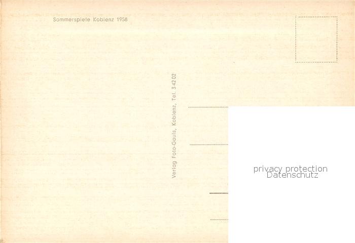 73019054 Koblenz Rhein Koblenzer Sommerspiele Serenade Schauspiel im Blumenhof Operette auf dem Rhein Oper im Blumenhof postalisch nicht gelaufen Erhaltung siehe scans [WerneD78] KatCode: 11110007111000