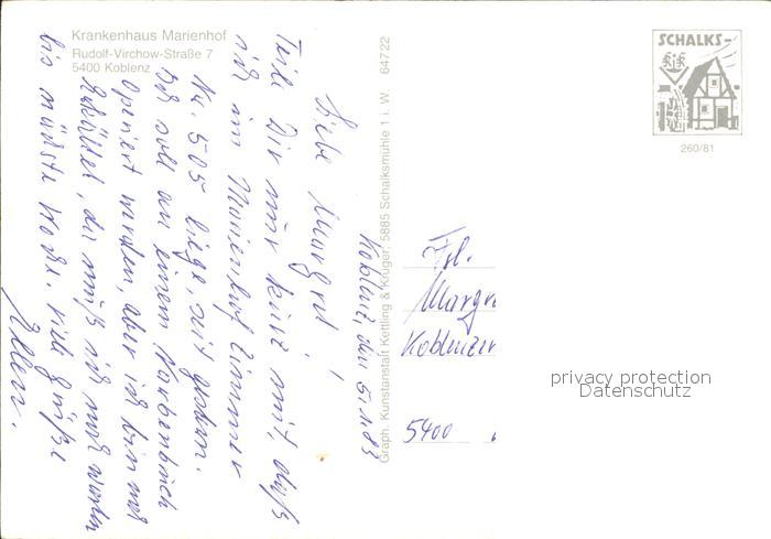 72130973 Koblenz Rhein Krankenhaus Marienhof postalisch nicht gelaufen Erhaltung siehe scans KatCode: 11110007111000