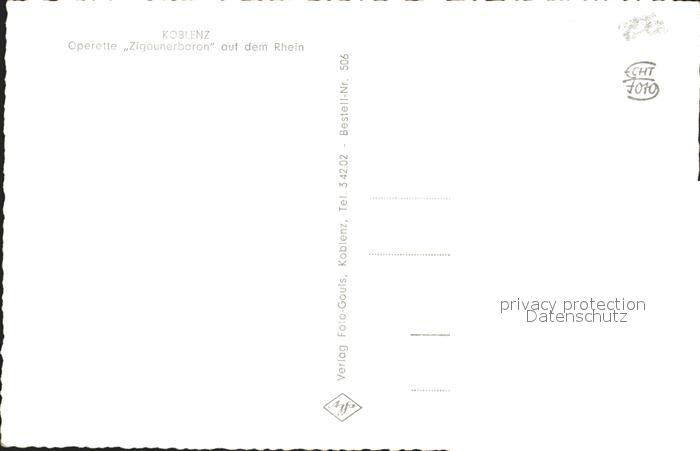 72187009 Koblenz Rhein Operette Zigeunerbaron auf dem Rhein postalisch nicht gelaufen Erhaltung siehe scans KatCode: 11110007111000