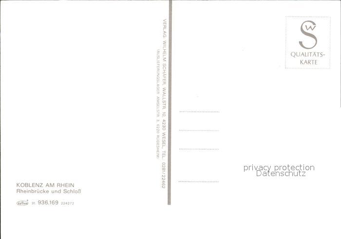72535095 Koblenz Rhein Pfaffendorfer Bruecke mit Schloss postalisch nicht gelaufen Erhaltung siehe scans [WerneD78 kt117box] KatCode: 11110007111000