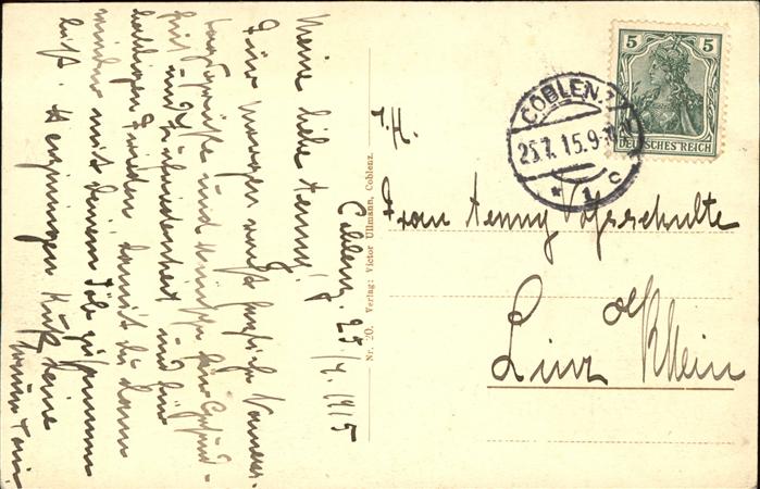 71495615 alte Postkarte Koblenz Rhein Regierung und Hotel Bellevue Koblenzer Hof postalisch gelaufen KatCode: 11110007111000