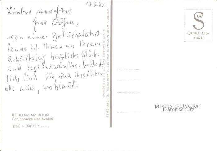 72091618 Koblenz Rhein Rheinbruecke Schloss postalisch nicht gelaufen KatCode: 11110007111000