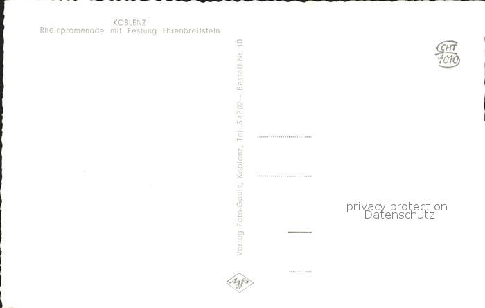 72048866 Koblenz Rhein Rheinpromenade Festung Ehrenbreitstein postalisch nicht gelaufen Erhaltung siehe scans KatCode: 11110007111000