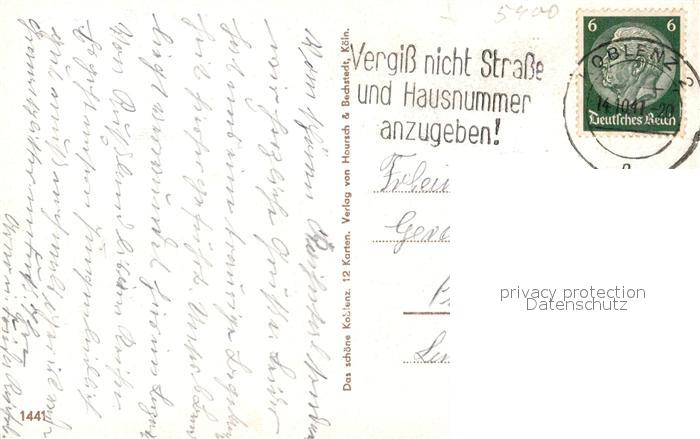 43370612 alte Postkarte Koblenz Rhein Rheinufer postalisch gelaufen Erhaltung siehe scans [FriedD77] KatCode: 11110007111000