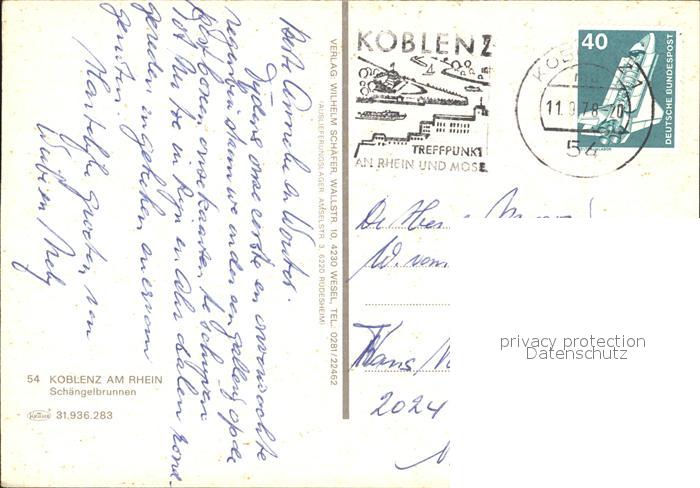 72287982 alte Postkarte Koblenz Rhein Schaengelbrunnen postalisch gelaufen Erhaltung siehe scans KatCode: 11110007111000