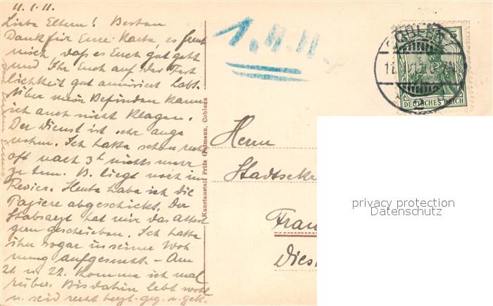 73557514 alte Postkarte Koblenz Rhein Schiffbruecke postalisch gelaufen Erhaltung siehe scans [FriedD77] KatCode: 11110007111000