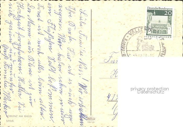 72304964 alte Postkarte Koblenz Rhein Schloss postalisch gelaufen Erhaltung siehe scans KatCode: 11110007111000