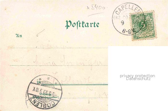 42815985 alte Postkarte Koblenz Rhein Schloss Stolzenfels Capellen Hotel Lahneck Litho postalisch gelaufen Erhaltung siehe scans [PaolaD17] KatCode: 11110007111000
