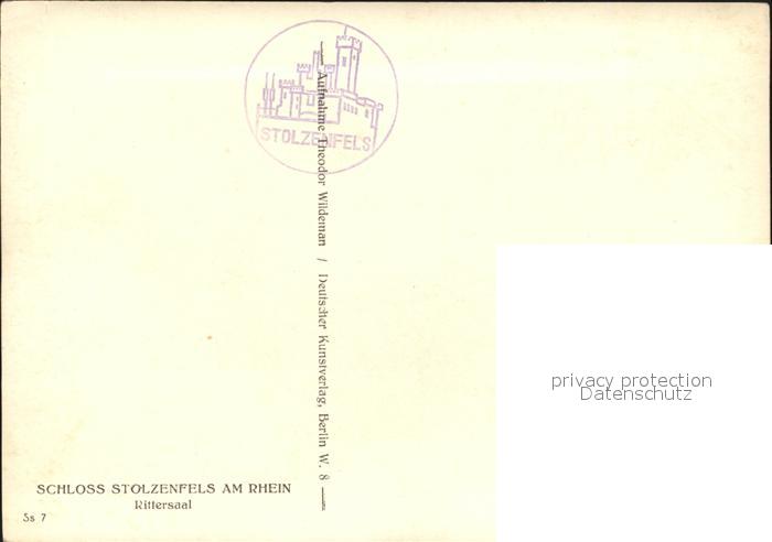 72008035 Koblenz Rhein Schloss Stolzenfels Rittersaal postalisch nicht gelaufen Erhaltung siehe scans KatCode: 11110007111000