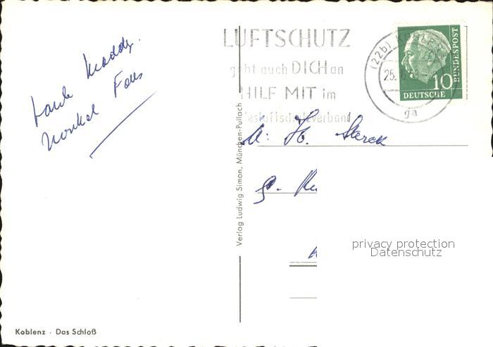 72423385 alte Postkarte Koblenz Rhein Schlosss postalisch gelaufen Erhaltung siehe scans KatCode: 11110007111000