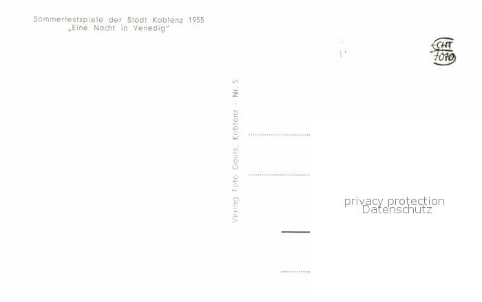 72633692 Koblenz Rhein Sommerfestspiele auf dem Rhein Eine Nacht in Venedig postalisch nicht gelaufen Erhaltung siehe scans [FriedD77] KatCode: 11110007111000