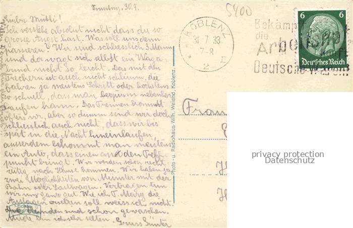 74095257 alte Postkarte KOBLENZ Rhein Stadtpanorama Koblenzer Hof und Regierungsgebaeude postalisch gelaufen Fliegeraufnahme Erhaltung siehe scans [FriedD77] KatCode: 11110007111000