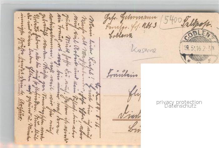 42975881 alte Postkarte Koblenz Rhein Telegrafen Kaserne postalisch gelaufen Erhaltung siehe scans [KathaD81] KatCode: 11110007111000