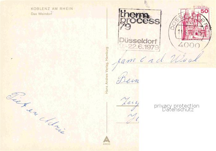 72906016 alte Postkarte Koblenz Rhein Weindorf postalisch gelaufen Erhaltung siehe scans [AndreD76] KatCode: 11110007111000
