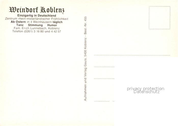 73228782 Koblenz Rhein Weindorf Koblenz Weinfest postalisch nicht gelaufen Erhaltung siehe scans [FriedD77] KatCode: 11110007111000