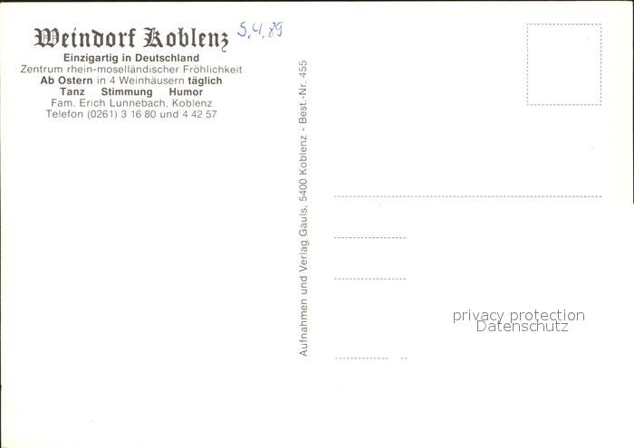 71914225 Koblenz Rhein Weindorf Zentrum rhein mosellaendischer Froehlichkeit Ab Ostern postalisch nicht gelaufen KatCode: 11110007111000