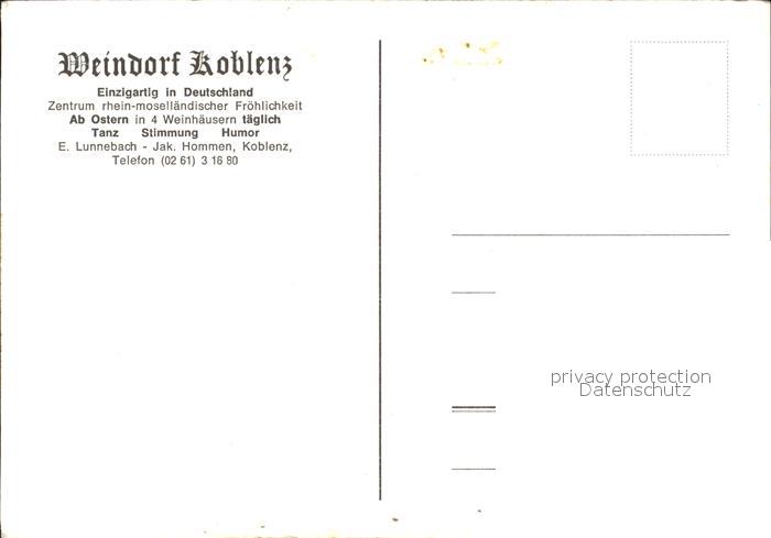 72529178 Koblenz Rhein Weinfest postalisch nicht gelaufen Erhaltung siehe scans KatCode: 11110007111000