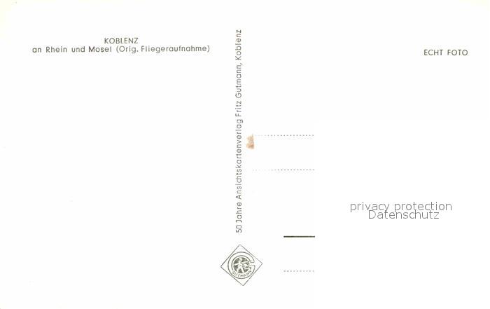 72758746 Koblenz Rhein Zusammenfluss mit Mosel Fliegeraufnahme postalisch nicht gelaufen Erhaltung siehe scans [WerneD78] KatCode: 11110007111000