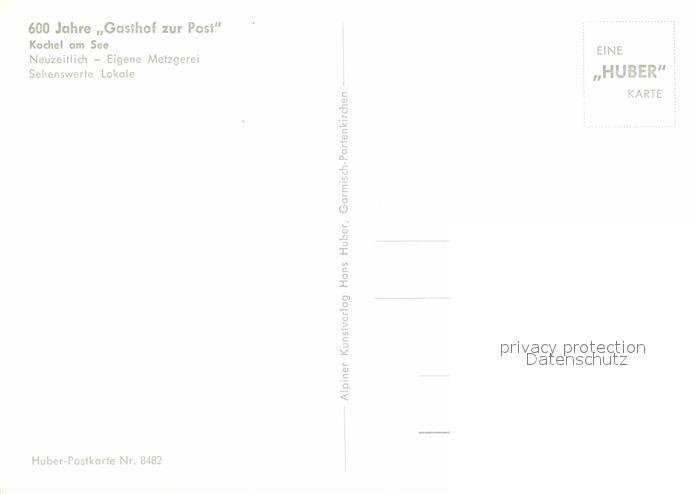 72783411 Kochel See 600 Jahre Gasthof zur Post Fassenmalerei Bronzestatue Huber Karte Nr 8482 postalisch nicht gelaufen Erhaltung siehe scans [FriedD77] KatCode: 11110009173133